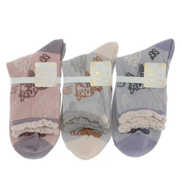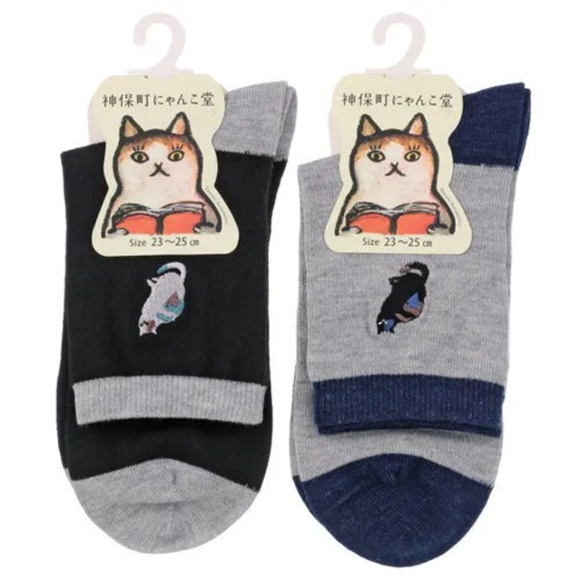 にゃんこ堂 振り返り猫刺繍 クルー丈ソックス