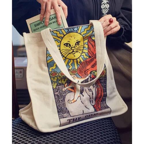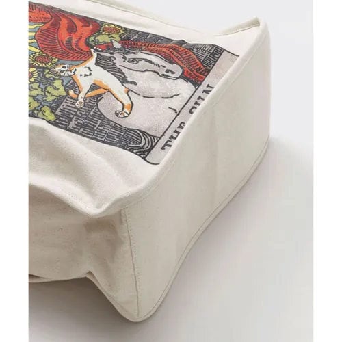 タロットカードをモチーフにしたイラストが大胆なトートバッグ。