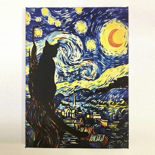 猫柄 猫雑貨 猫グッズ ねこ ネコ キャット にゃんこ cat 猫雑貨さんちこ プレゼント ギフト 可愛い おしゃれ インテリア アートファインボード アート 絵画 名画 名画パロ ゴッホ 星月夜