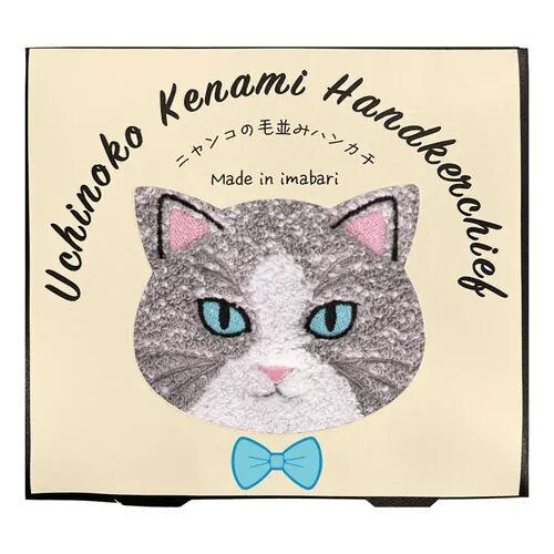 うちのニャンコ 毛並みハンカチ ハチワレ/ブルー