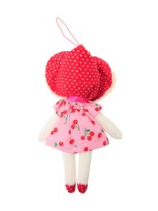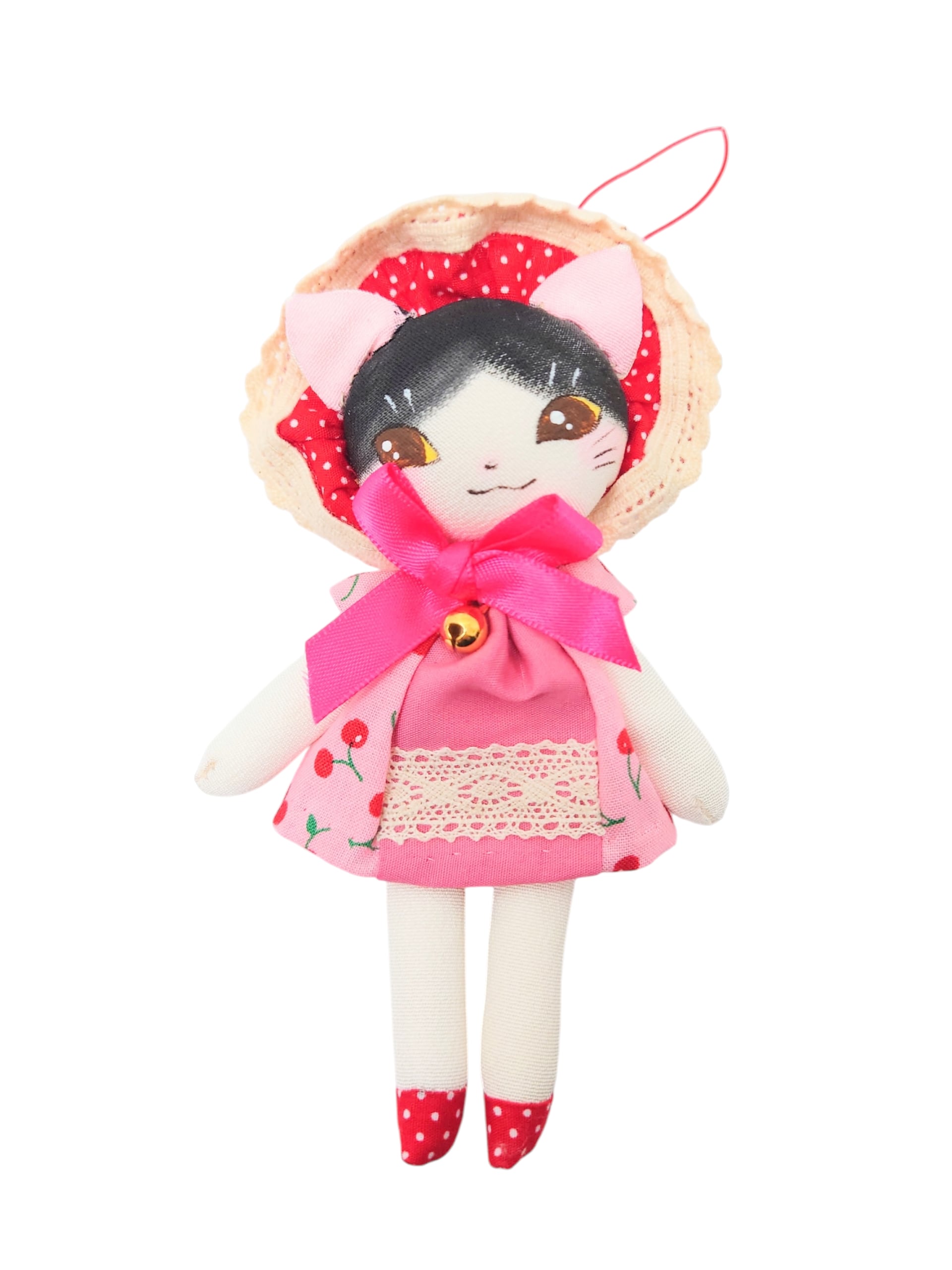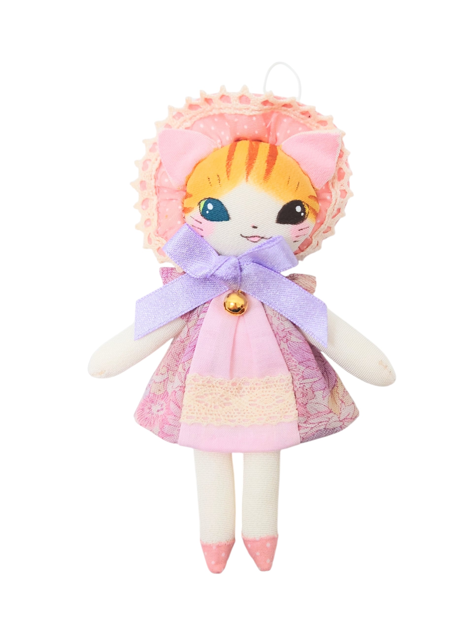 このハンドメイド作品は、愛らしいお洋服を着た猫のマスコットで、柔らかな雰囲気が感じられる一点ものです。手作りで仕上げられており、どこかほっこりするデザインが魅力です。