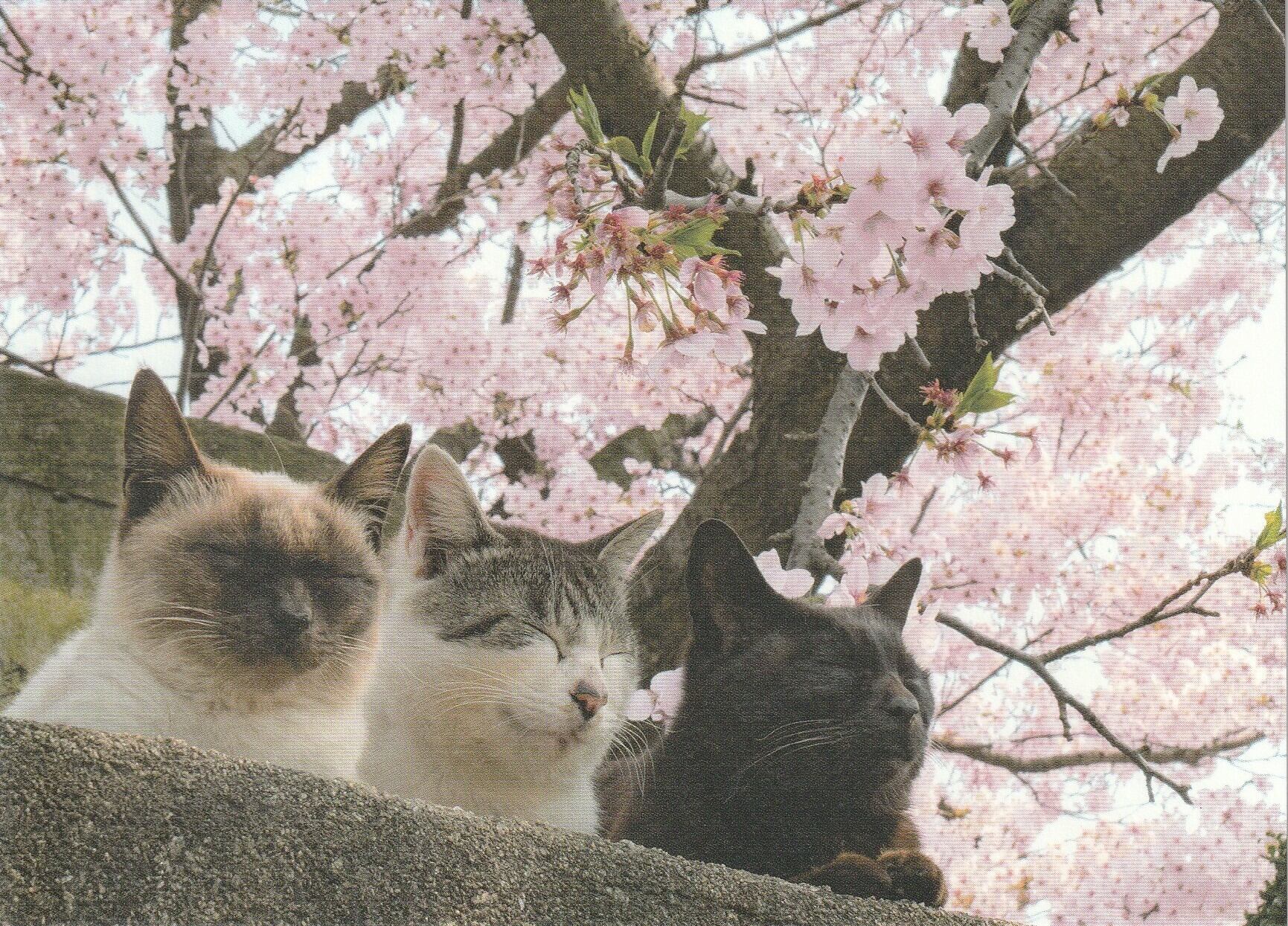 人気のネコ写真家simabossnekoさんのネコとサクラの微笑ましいポストカードです。