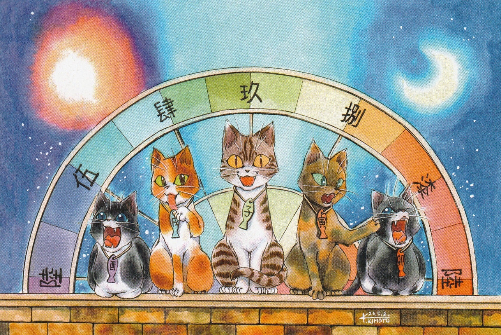 星猫堂 直筆額入りアート「くるくる猫の目時計」