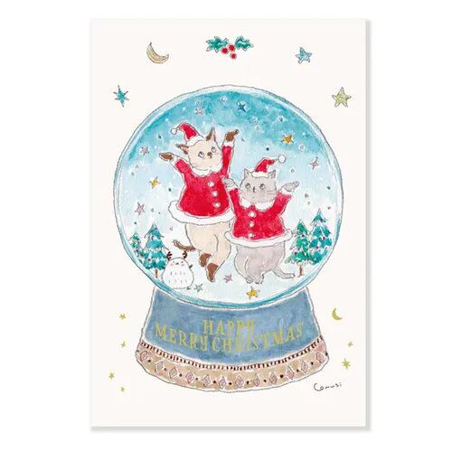 猫柄 猫雑貨 猫グッズ ねこ ネコ キャット にゃんこ cat 猫雑貨さんちこ プレゼント ギフト 可愛い おしゃれ 人気 動物 アニマル ポストカード 絵はがき 絵葉書 トコロコムギ TOCORO COMUGI クリスマスカード クリスマス Christmas スノードーム サンタ