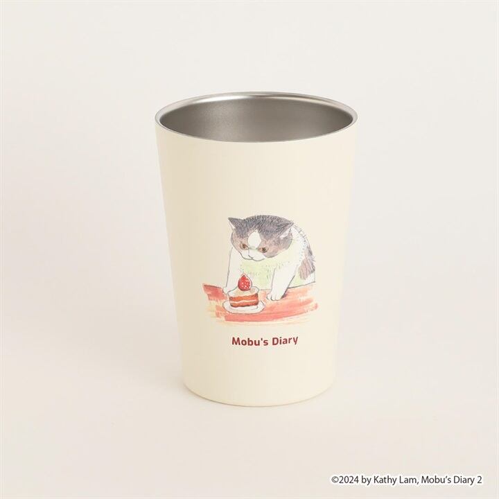 ケーキを狙うモブのイラストが描かれたステンレスタンブラーです。