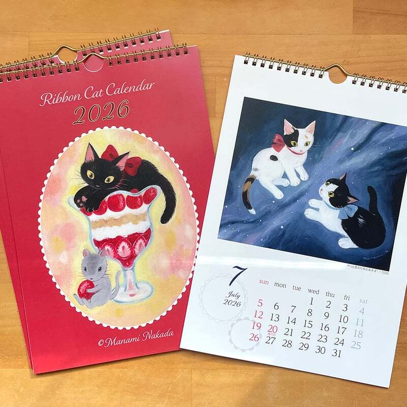 猫柄 猫雑貨 猫グッズ ねこ ネコ キャット にゃんこ cat 猫雑貨さんちこ プレゼント ギフト 可愛い おしゃれ 白猫 黒猫 イラスト リボンキャット カレンダー 2026年 仲田愛美
