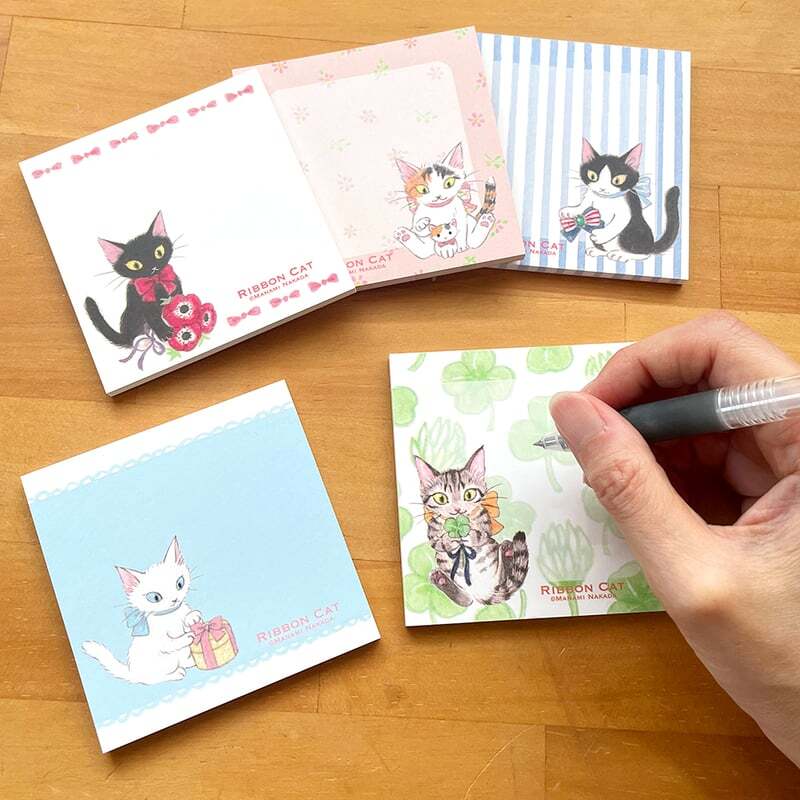 猫柄 猫雑貨 猫グッズ ねこ ネコ キャット にゃんこ cat 猫雑貨さんちこ プレゼント ギフト 可愛い おしゃれ 白猫 黒猫 イラスト リボンキャット 仲田愛美 メモパッド メモ帳 文房具 紙類
