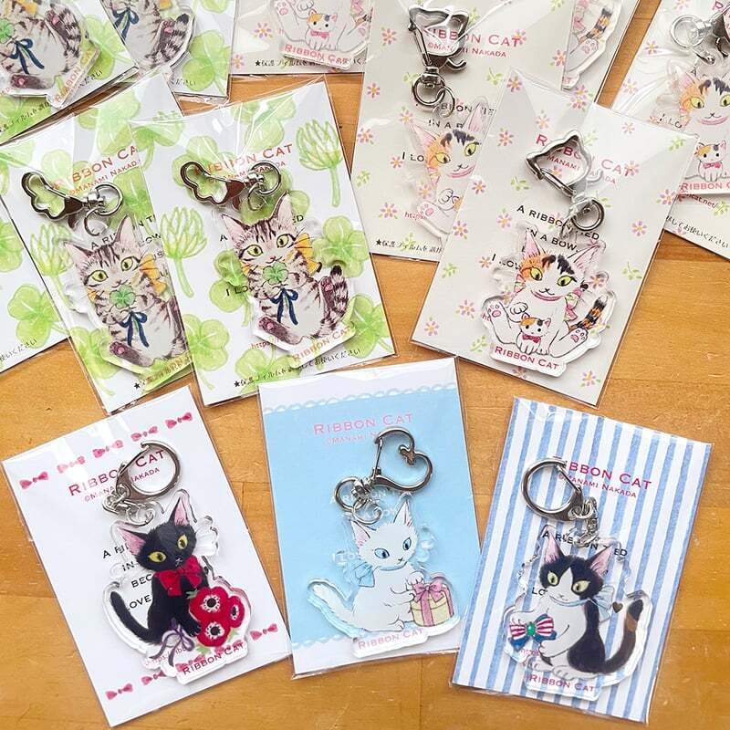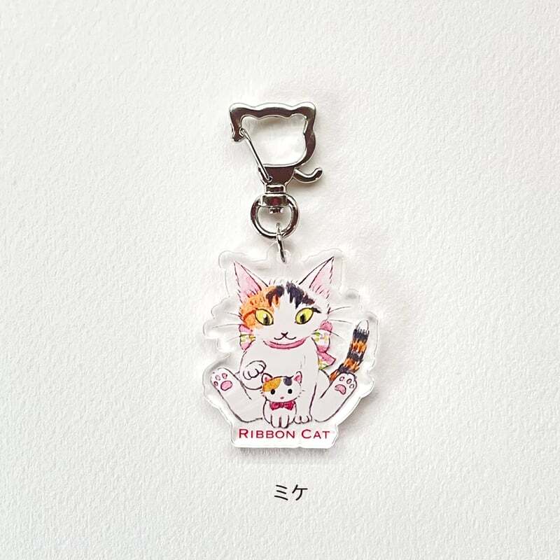 猫柄 猫雑貨 猫グッズ ねこ ネコ キャット にゃんこ cat 猫雑貨さんちこ プレゼント ギフト 可愛い おしゃれ 白猫 黒猫 イラスト リボンキャット 仲田愛美 キーホルダー アクリルキーホルダー アクキー ミケ 三毛猫
