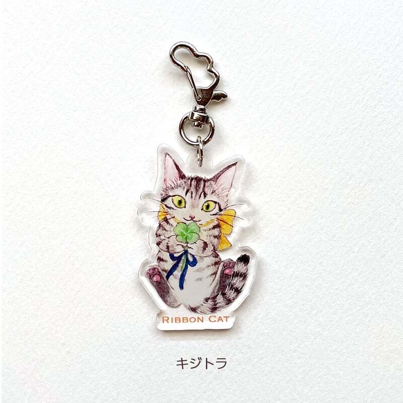 猫柄 猫雑貨 猫グッズ ねこ ネコ キャット にゃんこ cat 猫雑貨さんちこ プレゼント ギフト 可愛い おしゃれ 白猫 黒猫 イラスト リボンキャット 仲田愛美 キーホルダー アクリルキーホルダー アクキー キジトラ