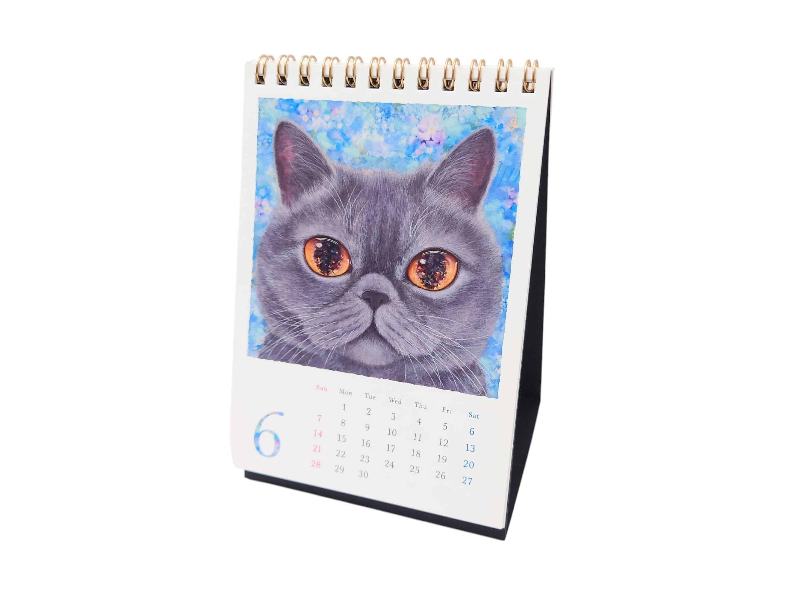 猫柄 猫雑貨 猫グッズ ねこ ネコ キャット にゃんこ cat 猫雑貨さんちこ プレゼント ギフト 可愛い おしゃれ 人気 動物 アニマル 福嶋吾然有 イラスト カレンダー サイン入り 卓上カレンダー 月めくり サイン入り