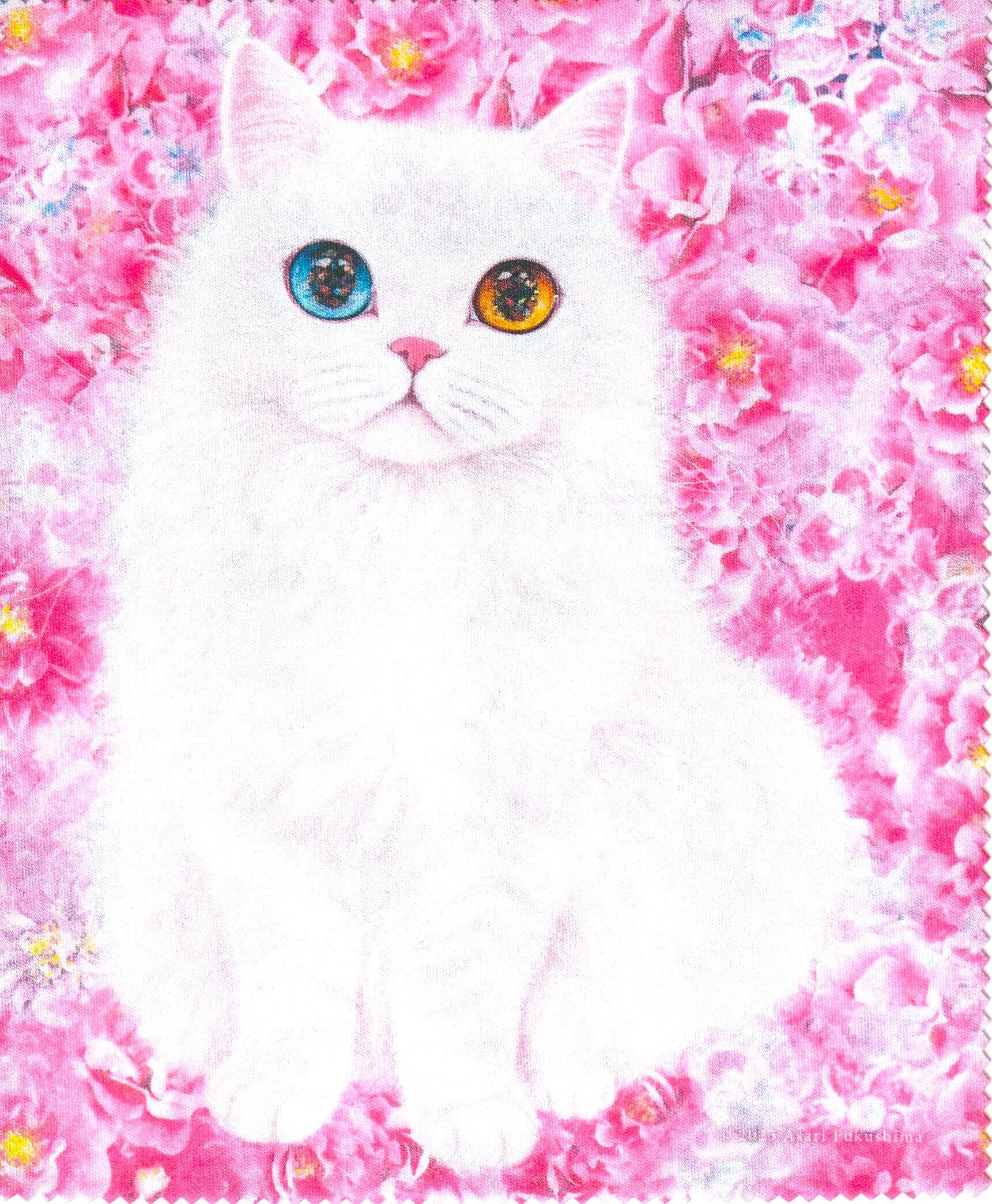 福嶋吾然有 クリーナークロス 大サイズ(白猫/花)
