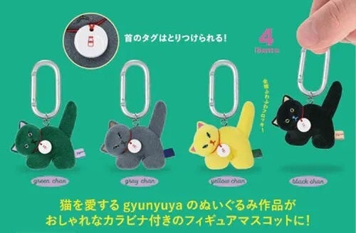 猫を愛するgyunyuyaのぬいぐるみ作品がおしゃれなカラビナ付きのフィギュアマスコットに!