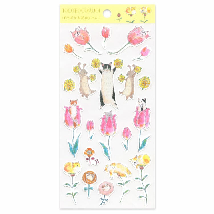 トコロコムギ 春柄コットンシール ぽかぽかお花畑にゃんこ