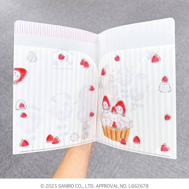 にゃんこたちがハローキティと並んで座ったり、いちご?が端から覗いたり…実用性だけではなく、使ってて楽しい賑やかなクリアファイルです。