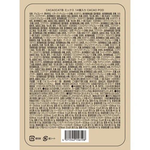 カカオポッドを持った猫のイラストが特徴的なCACAOCAT缶です。