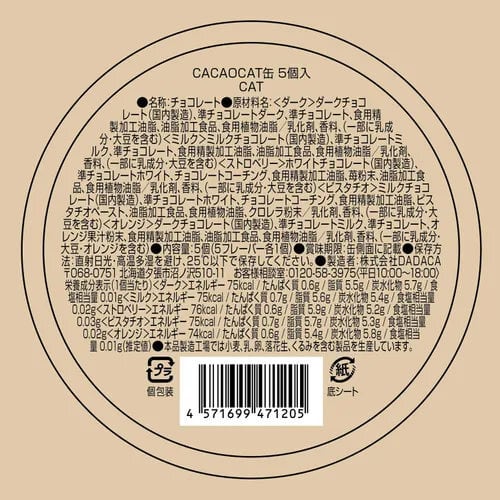 CACAOCAT缶 チョコ5個・CAT