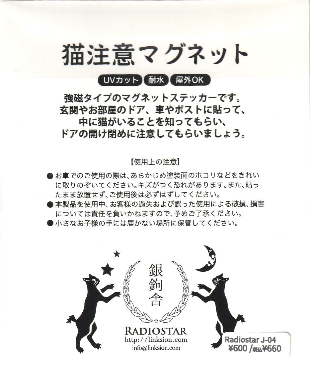 Radiostar 銀鉤舎 マグネット「猫がいます ドア開閉注意」J-04
