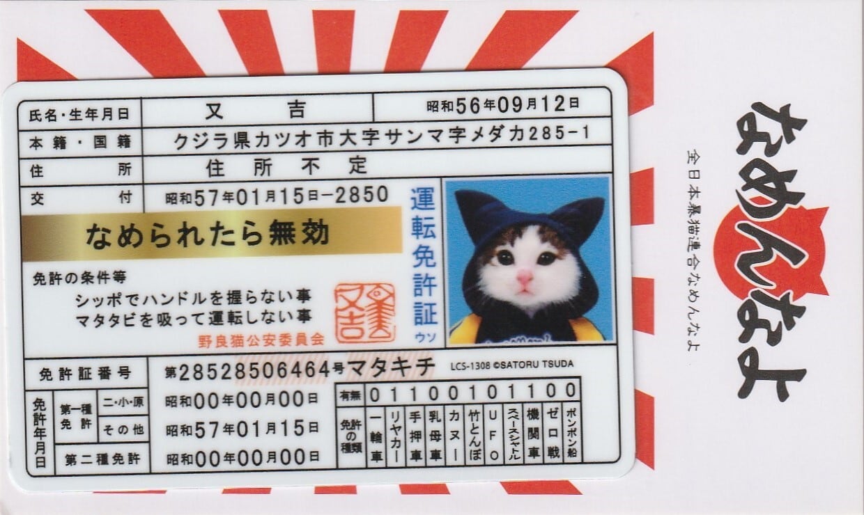 なめ猫 免許証02 又吉 キャラクターステッカー