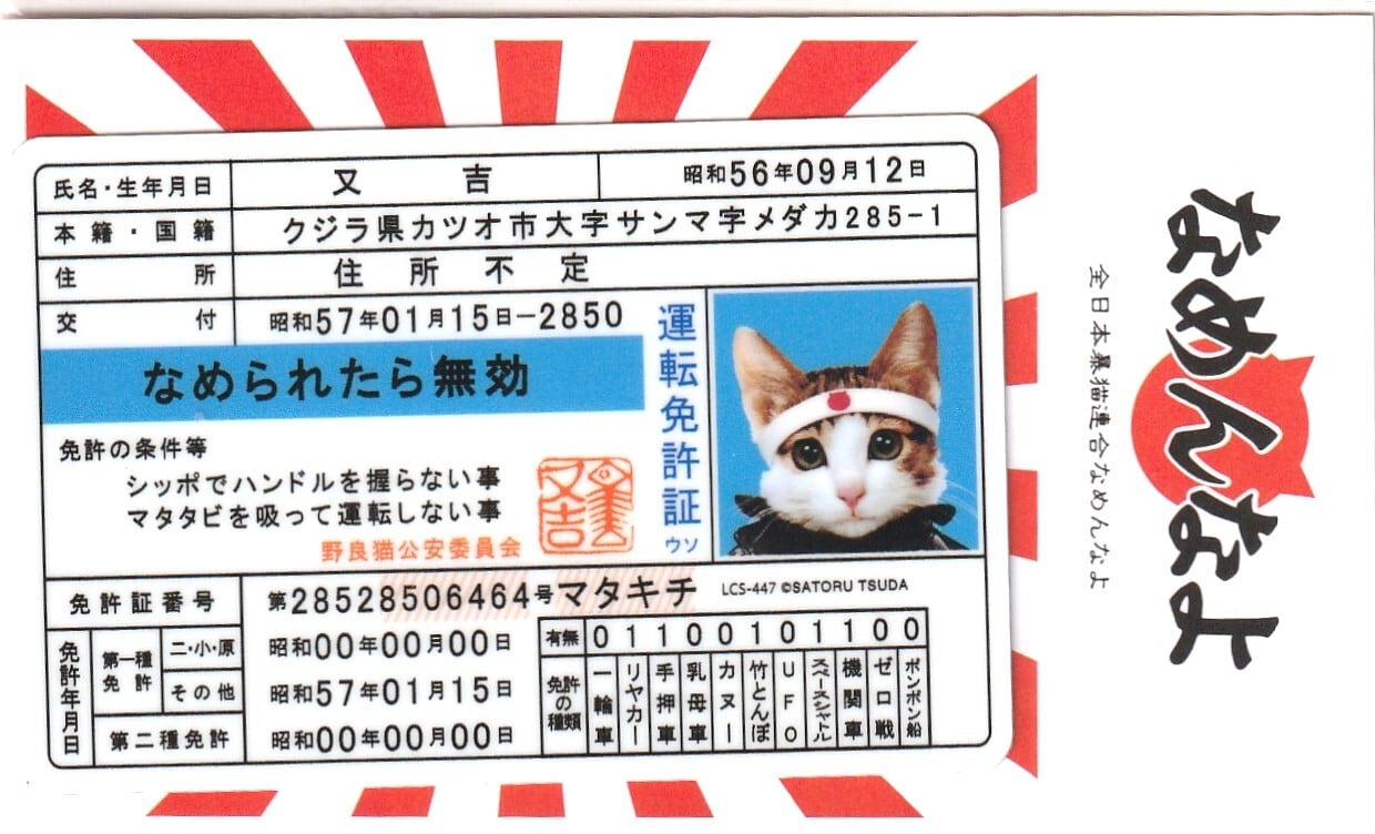 なめ猫 免許証 キャラクターステッカー