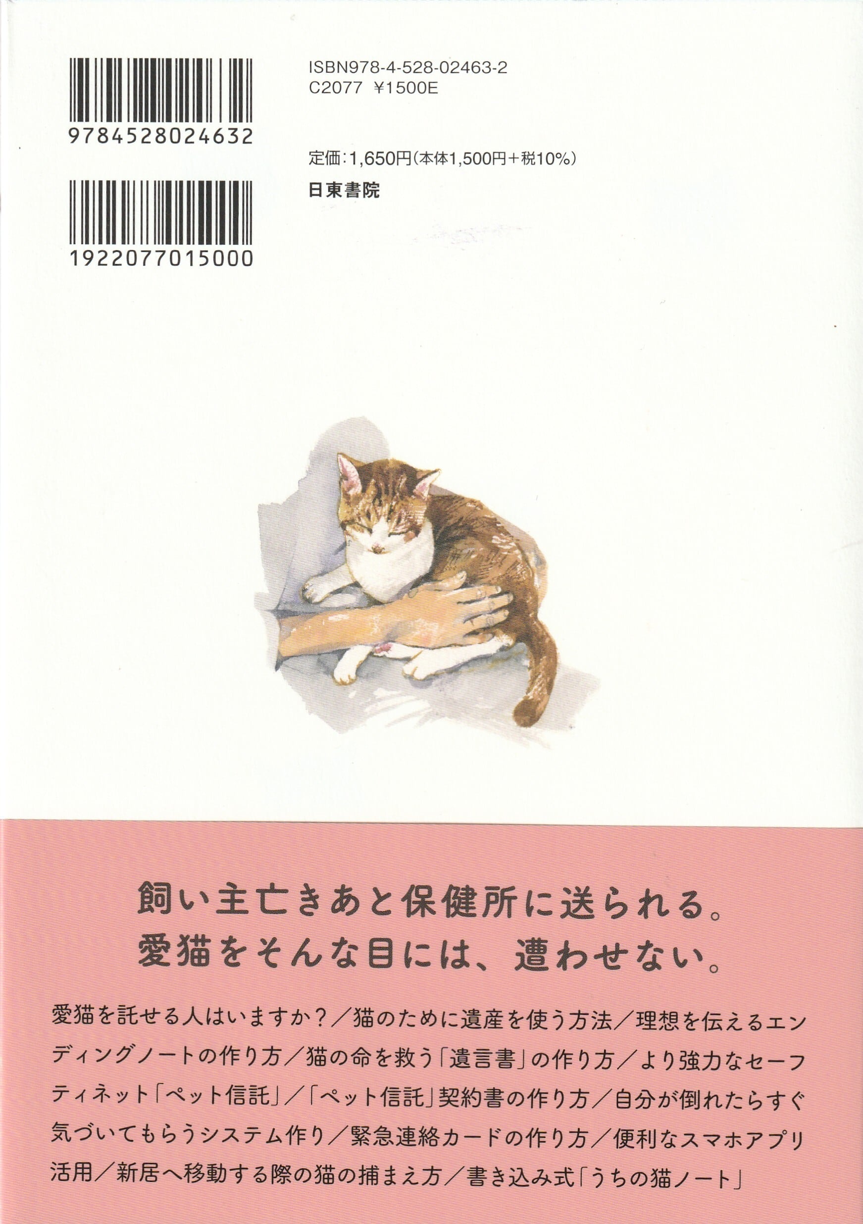 ですからこの本は、高齢の飼い主さんに限らず、すべての飼い主さんに読んでいただきたいと思っています。自分に「もしも」のことがあっても、愛する猫を守りたい。そう考えるすべての人にこの本を贈ります。
